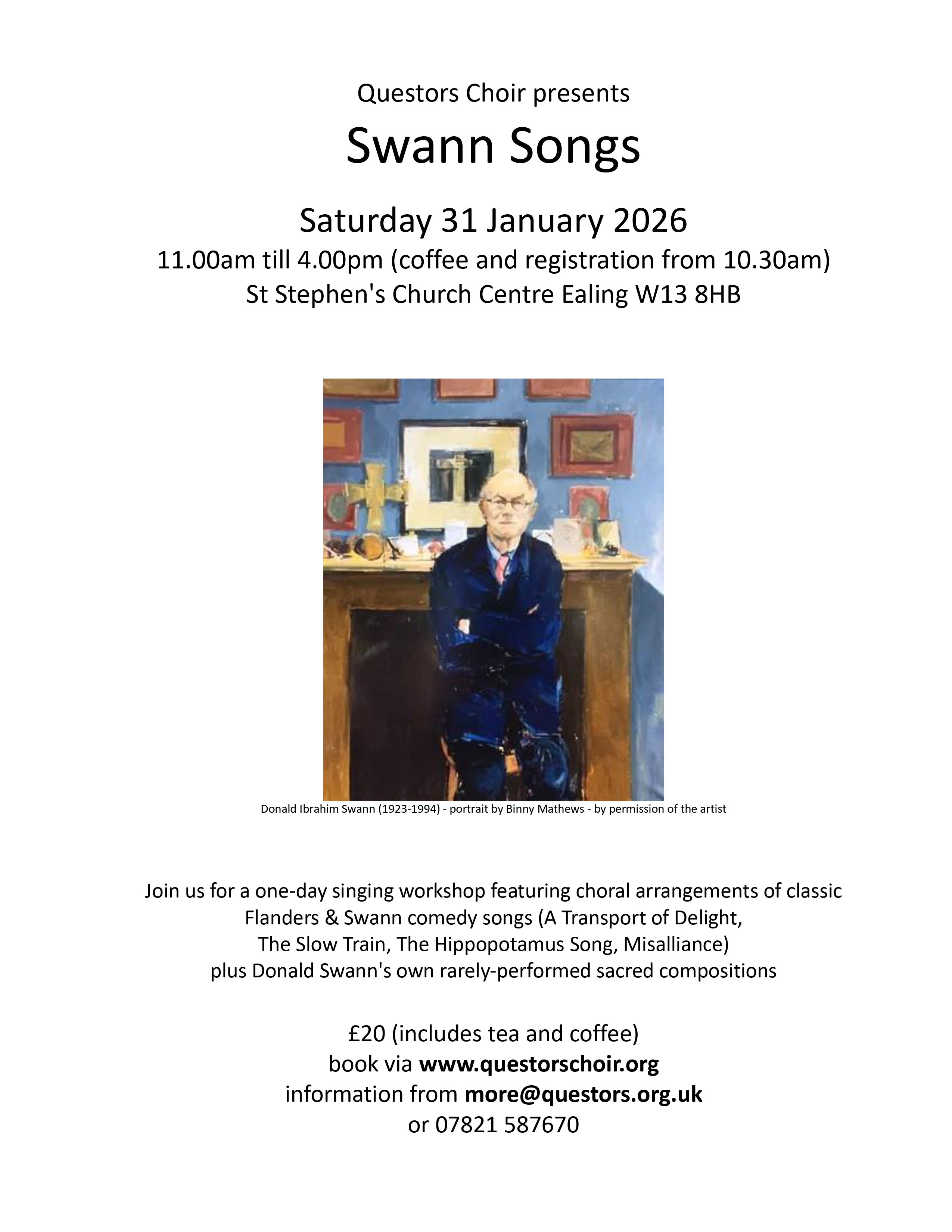 Questors Choir - 31/01/2026 11:00am - 2026 Swann Songs Workshop
