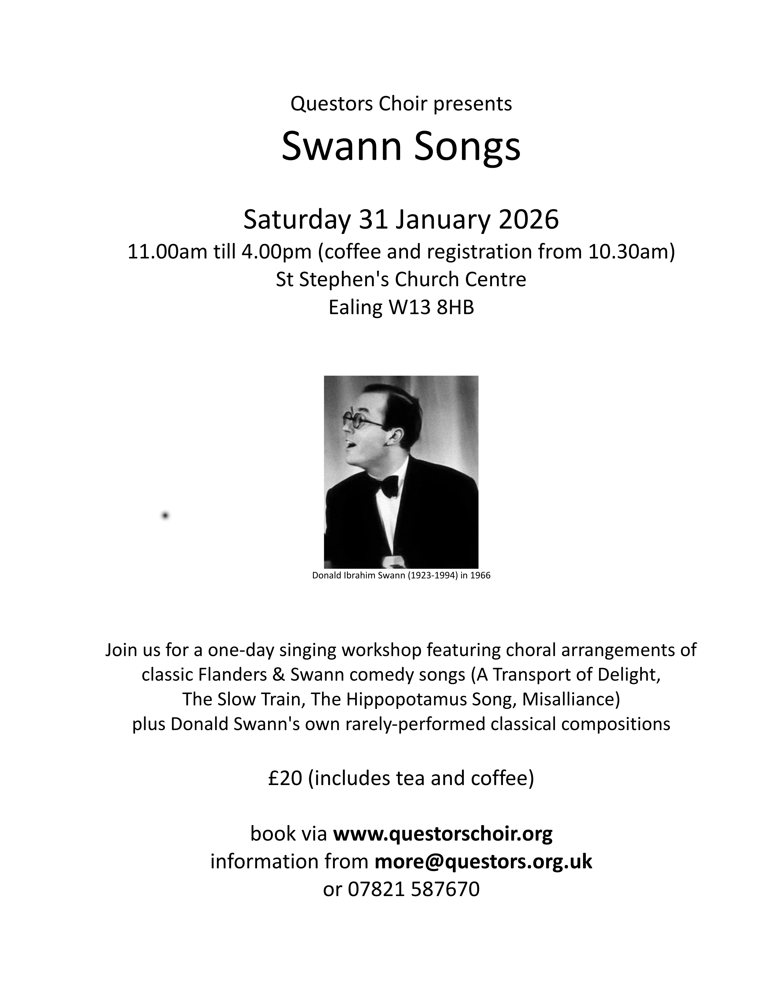 Questors Choir - 31/01/2026 11:00am - 2026 Swann Songs Workshop